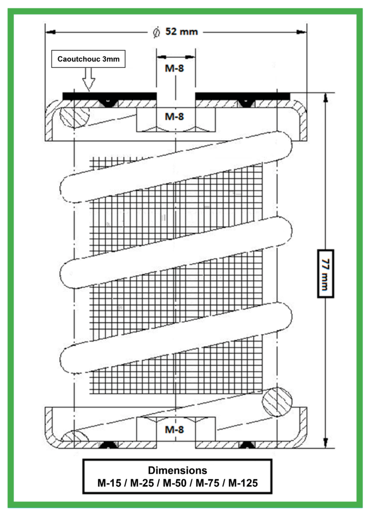 Les plots antivibratiles à ressort M assurent l’isolation vibratoire des machines tournantes pour des charges de 20 à 350 Kg/Pieds.